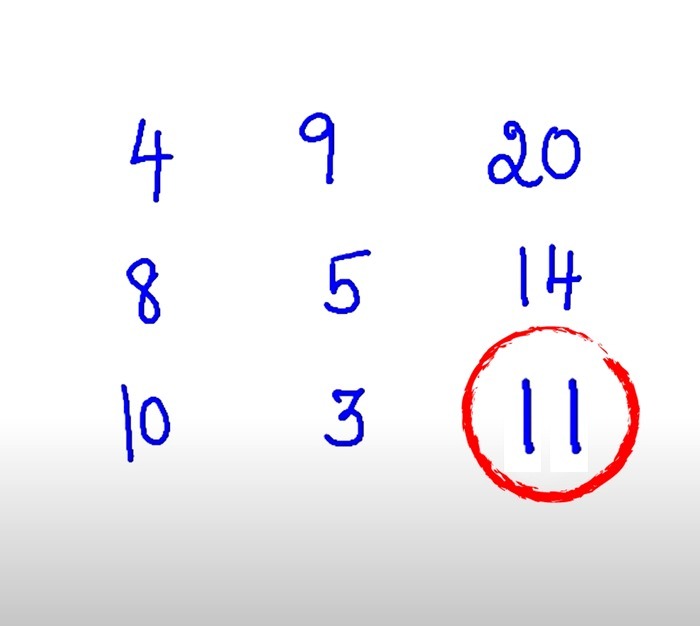 Este un test de inteligență care solicită gândirea logică. Trebuie să priviți cu atenție fiecare număr și să le observați pe fiecare linie. De altfel, trebuie să fie efectuat un calcul matematic.