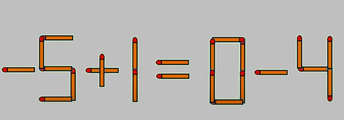 Se ia un băț de chibrit de la 9 și se pune în față, devenind -5. Astfel… -5+1 = 0-4, adică -4.