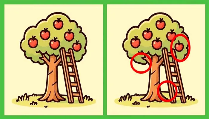 Testele IQ sunt esențiale pentru a vă verifica nivelul de inteligență. De data asta, tot ce trebuie să faceți este să descoperiți 3 diferențe dintre doi meri. Acest test necesită o gândire ageră, un raționament logic și atenție la detalii.
