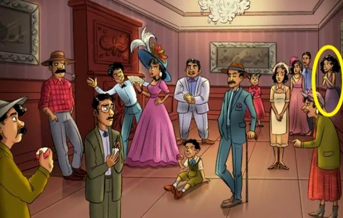 Dacă privești atent la reacțiile bărbaților, femeilor și copiilor din cameră, vei putea identifica persoana care nu mai este în viață, „fantoma”.