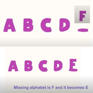 Practic, litera care lipsește este „F”, iar în momentul în care este desenată în șirul de mai jos, ea devine E.