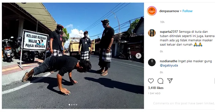 Forţele de ordine din Bali apar în mai multe videoclipuri oprind oamenii care nu purtau măşti şi i-au pus să facă flotări.
