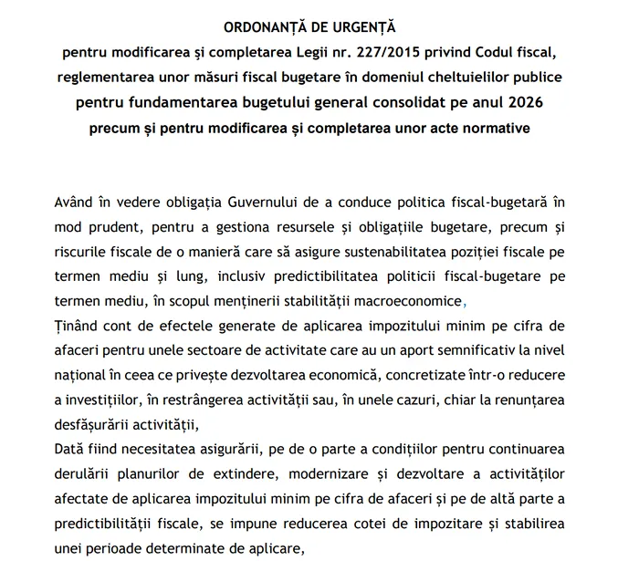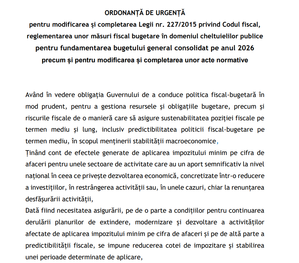 - reducere IMCA (impozitul pe cifra de afaceri) la 0,5% de la 1 ianuarie 2026 (prevederile se aplică până la data de 31 decembrie 2026)