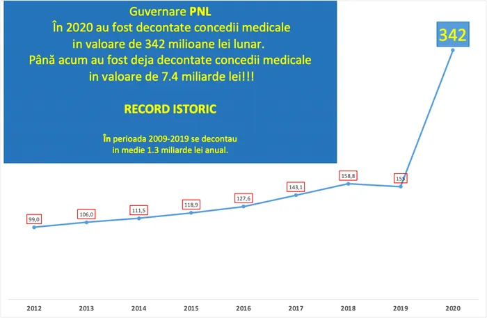 „Respectul faţă de sectorul privat se vede prin fapte. În 2020 au fost decontate concedii medicale în valoare de 342 milioane lei lunar. Până acum au fost deja decontate concedii medicale în valoare de 7,4 miliarde lei. Record istoric”, a scris ministrul duminică, pe pagina lui de Facebook.