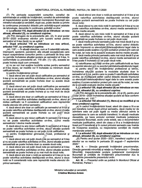 Ministrul Educației, Monica Anisie, a semnat un ordin de ministru pentru ‘modificarea și completarea Regulamentului-cadru de organizare și funcționare a unităților de învățământ preuniversitar’.