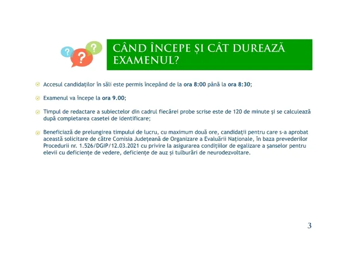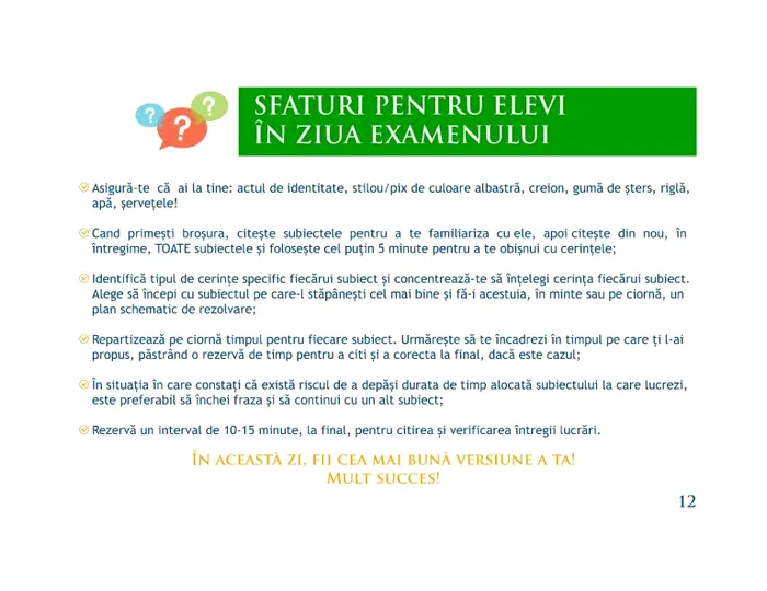 Prin creșterea timpului alocat cu 15 minute pentru a completa casetele, deci sunt lucruri mici, dar care toate la un loc vin în sprijinul elevilor. Toate aceste recomandări fac obiectul unui document care va fi postat în această seară pe site-ul Ministerului Educației: recomandări pentru elevi și părinți.