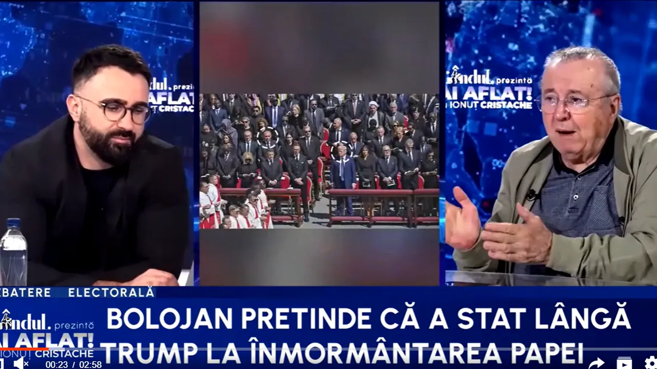 Ion Cristoiu critică politicienii care au băgat capul în pozele cu Trump, profitând de ceremoniile funerare al Papei Francisc de la Vatican. Ziaristul afirmă, la Ai Aflat cu Ionuț Cristache, Gândul Exclusiv, că cel mai mult îl dezamăgește postarea președintelul interimar Ilie Bolojan pe site-ul Administrației Prezidențiale și pe Facebook-ul personal.