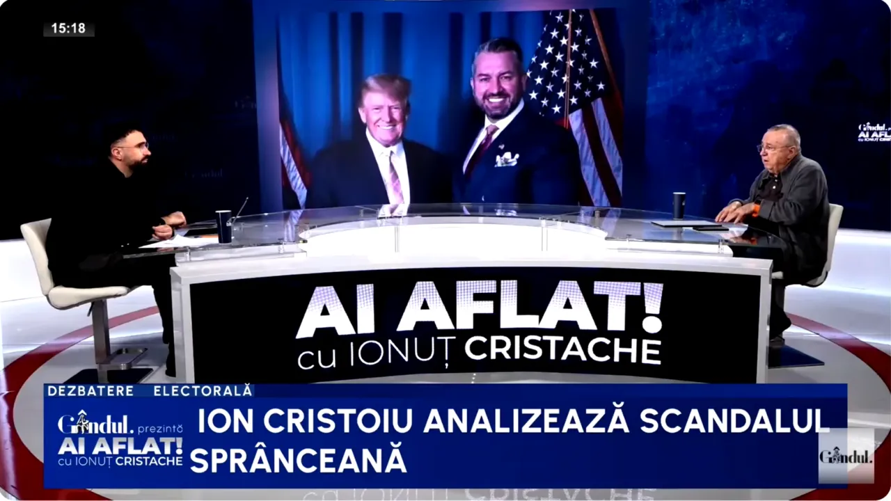 În cadrul unei ediții transmise live de Gândul a emisiunii „Ai aflat!” cu Ionuț Cristache, scriitorul și publicistul Ion Cristoiu a analizat scandalul „Sprânceană”. El a explicat că cei doi emisari au fost „inventați” ca să fie dat un semnal atât administrației, cât și românilor.