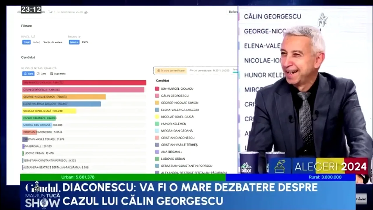 Într-o ediție transmisă live de Gândul, Dan Diaconescu a comparat ascensiunea lui Călin Georgescu pe scena politică actuală cu succesul de acum patru ani al liderului AUR, George Simion.  Urmăriți aici, integral, emisiunea lui Marius Tucă.