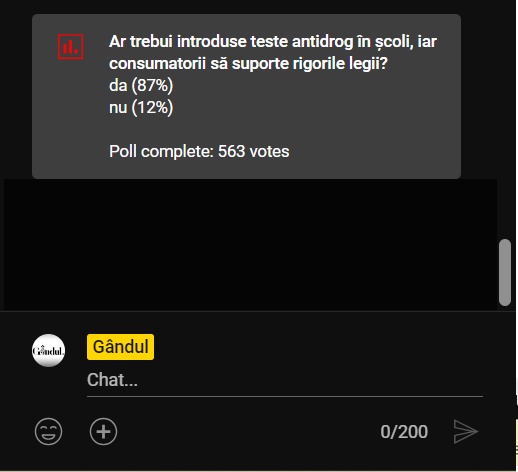 „Ar trebui introduse teste antidrog în școli, iar consumatorii să suporte rigorile legii?”. Aceasta a fost întrebarea serii de marți, 29 august, la poll-ul emisiunii „Marius Tucă Show”.