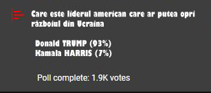 În cadrul ediției emisiunii „Marius Tucă Show” de miercuri, 11 septembrie, al cărei invitat a fost analistul Dan Dungaciu, urmăritorii au răspuns la întrebarea sondajului Gândul: „Care este liderul american care ar putea opri războiul din Ucraina?”