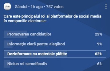 Pe 19 octombrie, în seara în care la „Marius Tucă Show” a fost invitat analistul politic Bogdan Teodorescu, întrebarea adresată telespectatorilor a fost: „Care este principalul rol al platformelor de social media în campaniile electorale?”