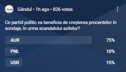„Ce partid va beneficia de creșterea procentelor în sondaje, în urma scandalului azilelor?”. Aceasta a fost întrebarea propusă la poll-ul emisiunii „Marius Tucă Show” de joi, 13 iulie, fiind oferite trei variante de răspuns.