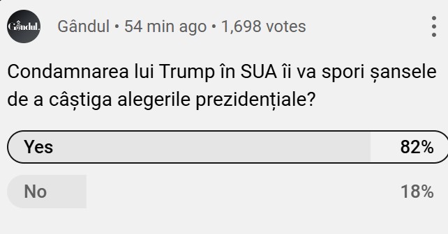 POLL Marius Tucă Show: „Condamnarea lui Donald Trump în SUA îi va spori șansele de a câștiga alegerile prezidențiale?”