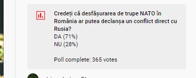 Cei mai mulți, 71%, cred ca DA și doar 28% sunt de părere că desfășurarea de trupe NATO în România nu ar putea declanșa un conflict direct cu Rusia.