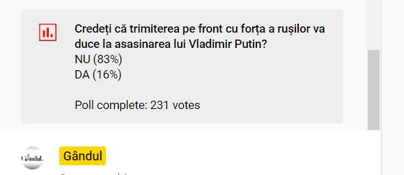 Peste 80%, mai precis 86%, dintre cei care au răspuns la poll nu cred în această variantă. Doar 16% dintre telespectatori se așteaptă la acest deznodământ.