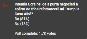 POLL Marius Tucă Show: „Intenția Ucrainei de a purta negocieri a apărut de frica reîntoarcerii lui Donald Trump la Casa Albă?”