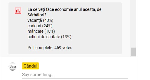 Telespectatorii emisiunii „Marius Tucă Show” – ediția de miercuri, 21 decembrie, au fost întrebați „la ce vor face economie anul acesta, de Sărbători”, având la dispoziție patru variante de răspuns: