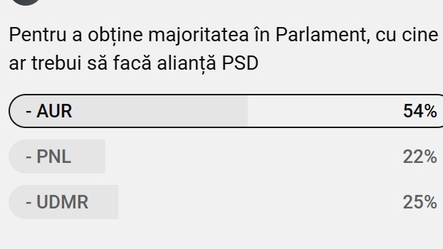 Telespectatorii emisiunii „Marius Tucă Show” au fost întrebați, la poll-ul din această seară, „pentru a obține majoritatea în Parlament, cu cine ar trebui să facă alianța PSD?”. Au existat trei variante de răspuns.
