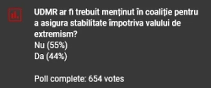Astfel, cea mai mare parte dintre respondenți susțin că UDMR nu ar fi trebuit să fie menținută la guvernare doar cu acest scop.