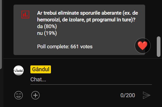 „Marius Tucă Show” a propus în ediția de joi, 6 iulie, un sondaj, iar întrebarea este următoarea: Ar trebui eliminate sporurile aberante (de exemplu: de hemoroizi, de izolare, de program în ture?).