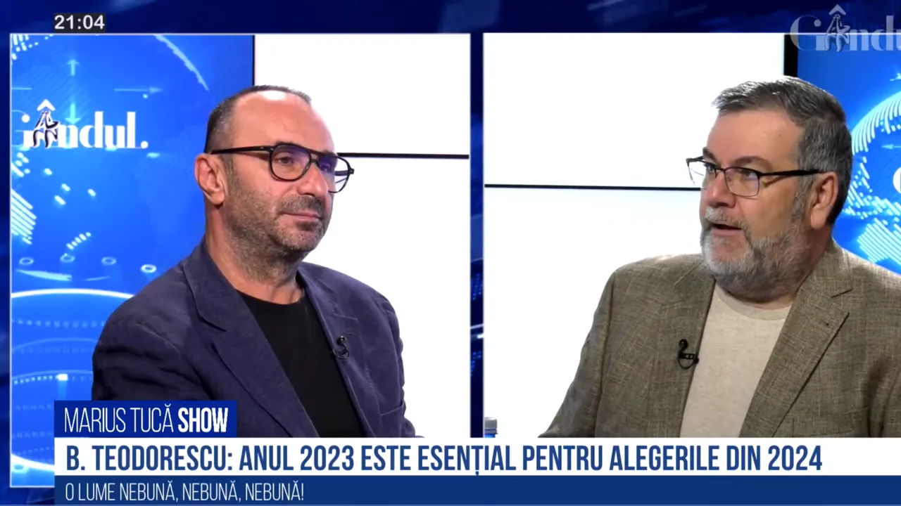 Bogdan Teodorescu, analist politic, a fost invitatul lui Marius Tucă într-o ediție transmisă live de Gândul. Politologul a vorbit despre anul electoral 2024, atunci când vor avea loc alegerile locale, prezidențiale, parlamentare și europarlamentare în România. În acest context, invitatul lui Marius Tucă a făcut o radiografie a viitoriilor candidați la conducerea țării noastre.