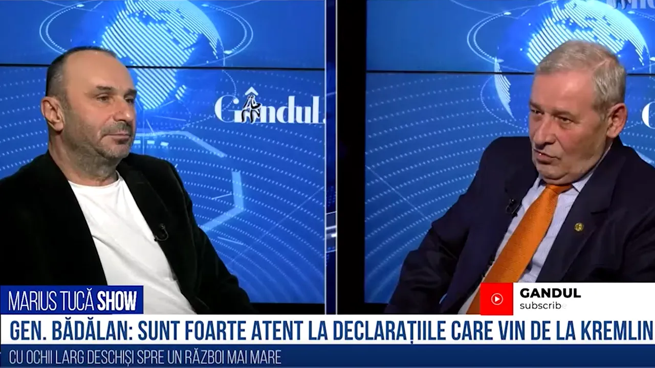 Gen. (R) Eugen Bădălan – fost șef al Statului Major General al Armatei Române, a fost invitatul lui Marius Tucă într-o ediție transmisă live de Gândul. Acesta spune că Republica Moldova este un stat eșuat. Urmăriți aici, integral, emisiunea lui Marius Tucă.