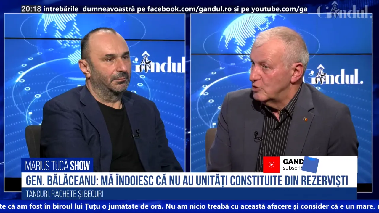 Gen. (R) Virgil Bălăceanu, fost reprezentant al României la Comandamentul NATO de la Bruxelles și fost șef al Brigăzii Multinaționale din Sud-Estul Europei, a fost invitatul lui Marius Tucă într-o ediție transmisă live de Gândul. Acesta spune că rușii au o armată de 326 de mii de oameni. Urmăriți aici, integral, emisiunea lui Marius Tucă.