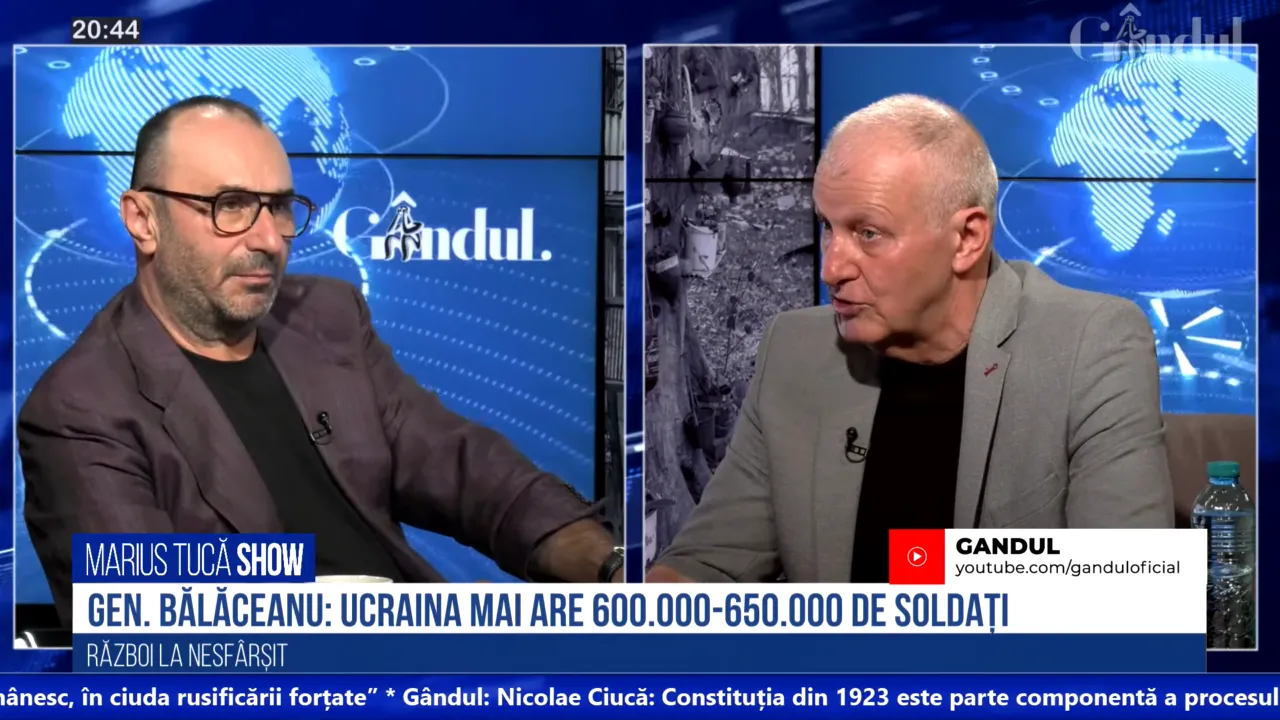 Gen (R) Virgil Bălăceanu, fost reprezentant al României la Comandamentul NATO de la Bruxelles și fost șef al Brigăzii Multinaționale din Sud-Estul Europei, a fost invitatul lui Marius Tucă într-o ediție transmisă live de Gândul. Acesta a vorbit, printre altele, despre armata Ucrainei, dar și despre cea a Rusiei. Urmăriți aici, integral, emisiunea lui Marius Tucă.