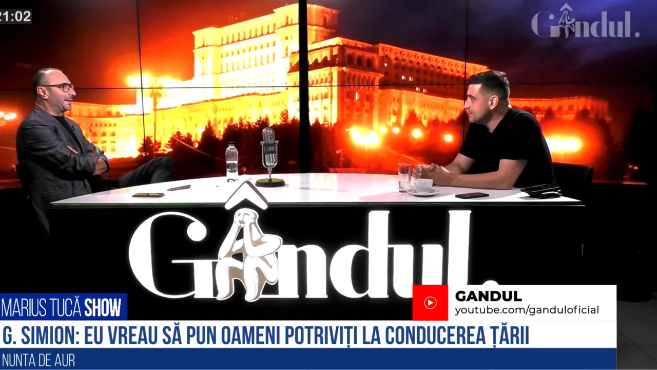 George Simion, președintele partidului AUR, a fost invitatul lui Marius Tucă într-o ediție transmisă live de Gândul. Politicianul a vorbit despre alegerile prezindențiale din 2024, precizând că va oferi „tuturor oamenilor, membri de partid AUR și celor care nu sunt membri de partid, șansa de a fi candidatul AUR la alegerile prezidențiale”. Întrebat, însă, dacă el personal va candida la președinția României, invitatul lui Marius Tucă a afirmat că „încă e prea devreme” pentru acest lucru.