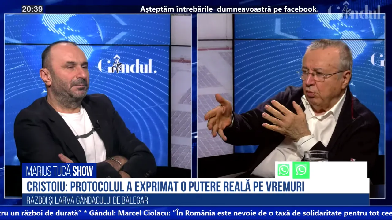 Emisiunea o puteți urmări pe mariustuca.ro, miscareaderezistenta.ro, pe paginile de Facebook  Marius Tucă – și Gândul și pe canalul de YouTube Gândul. Tineți aproape!”