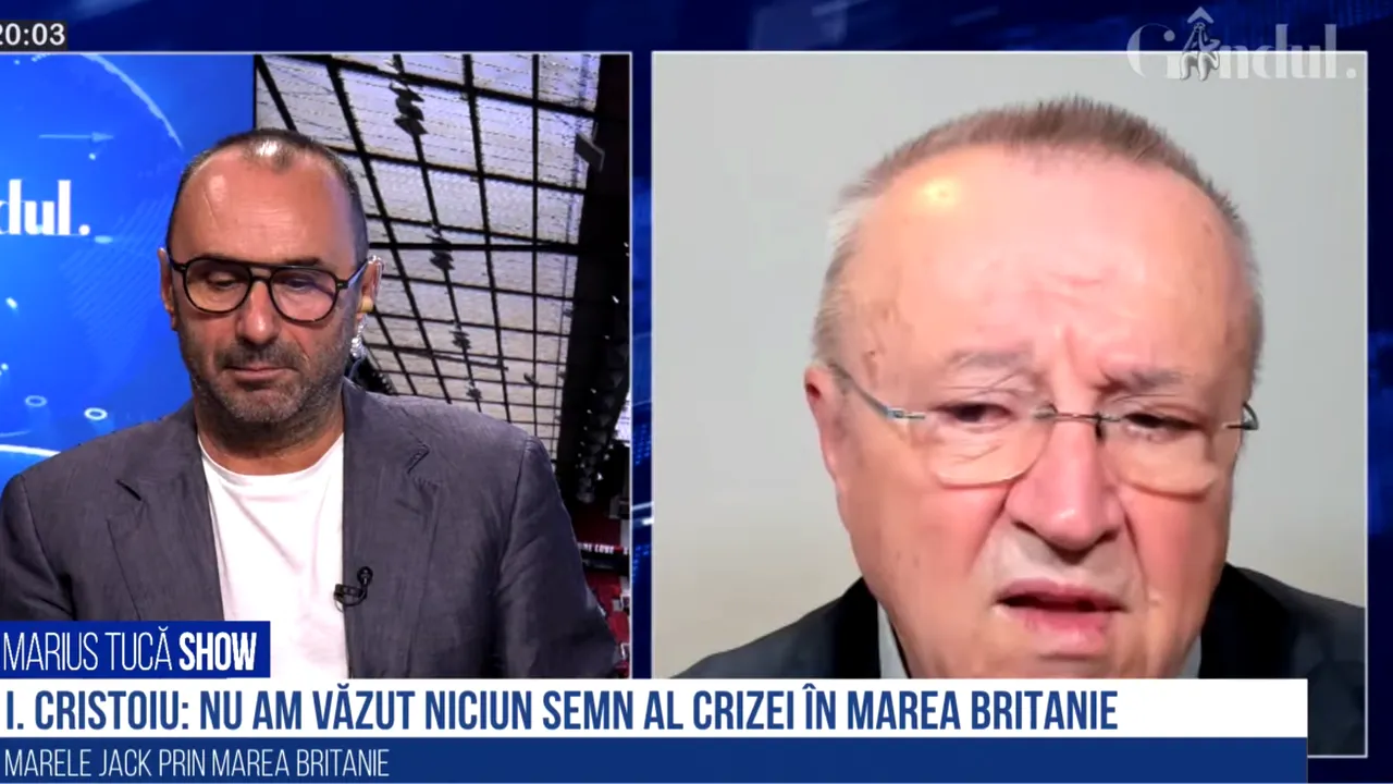 Ion Cristoiu, publicist și scriitor, a fost invitatul lui Marius Tucă într-o ediție transmisă live de Gândul. Jurnalistul a vorbit despre experiența trăită în Marea Britanie, unde care se află deja de 11 zile, în contextul războiului din Ucraina și al crizelor de la nivel global. Invitatul lui Marius Tucă a afirmat că „nu a văzut niciun semn al crizei” aici, iar „lumea este relaxată, pentru că totul funcționează cu precizie de ceasornic”.