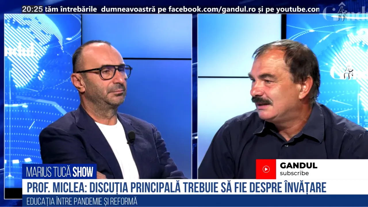 Prof. univ. dr. Mircea Miclea a fost invitatul lui Marius Tucă într-o ediție transmisă live de Gândul. Fostul ministru al Educației a afirmat că, în sistemul nostru de învățământ, accentul ar trebui pus pe învățare, și nu pe evaluare. Invitatul lui Marius Tucă este de părere că lecțiile celor mai buni profesori din țară ar trebui înregistrate și oferite drept model și cadrelor didactice mai slab pregătite.