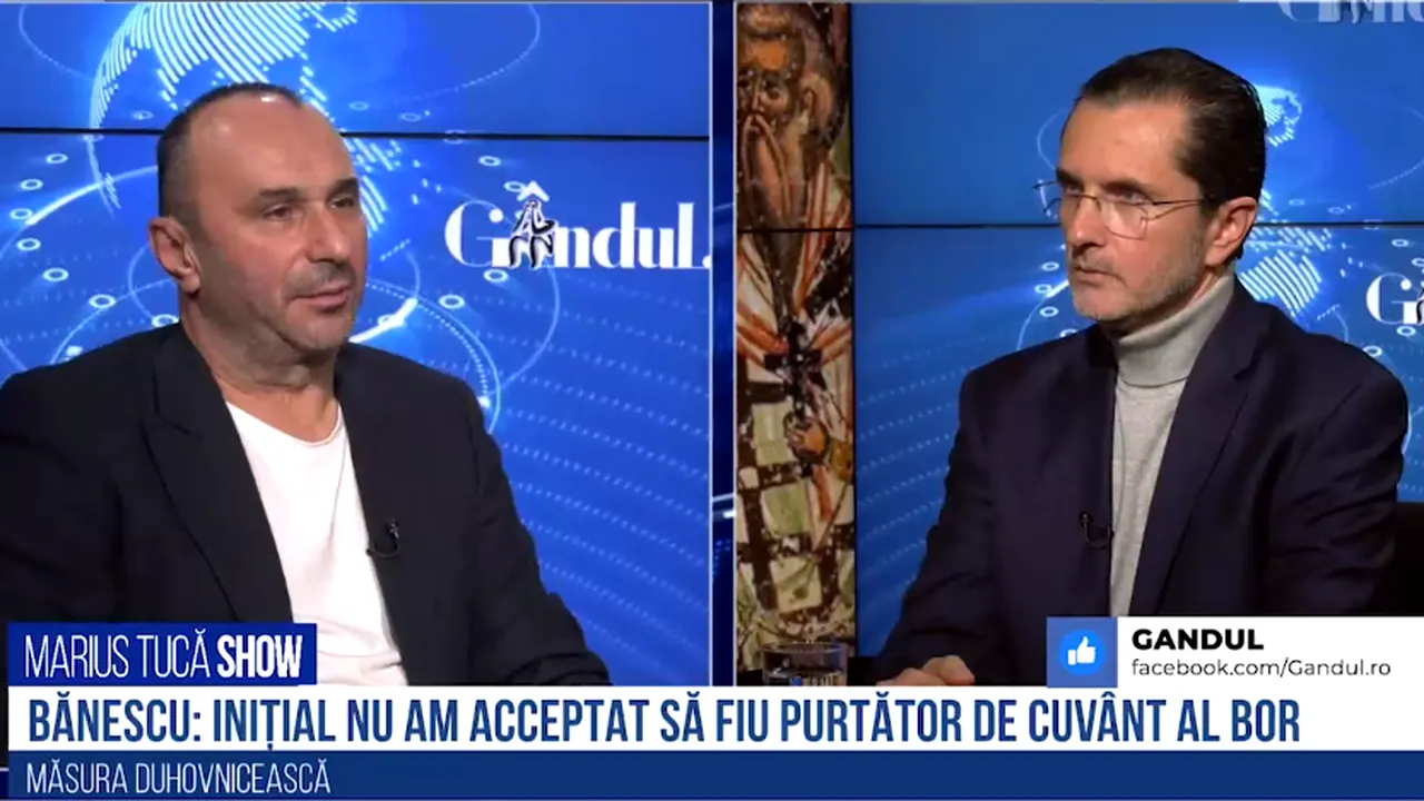 Poziția de purtător de cuvânt al Patriarhiei Române a fost inițial refuzată de Vasile Bănescu. „A trebuit să accept pentru că depindea schimbarea respectivă de persoana mea. N-au fost atunci alternative”, spune purtătorul de cuvânt al Patriarhiei Române, Vasile Bănescu invitatul lui Marius Tucă la ediția specială transmisă live de Gândul. Urmăriți aici, integral, emisiunea lui Marius Tucă.