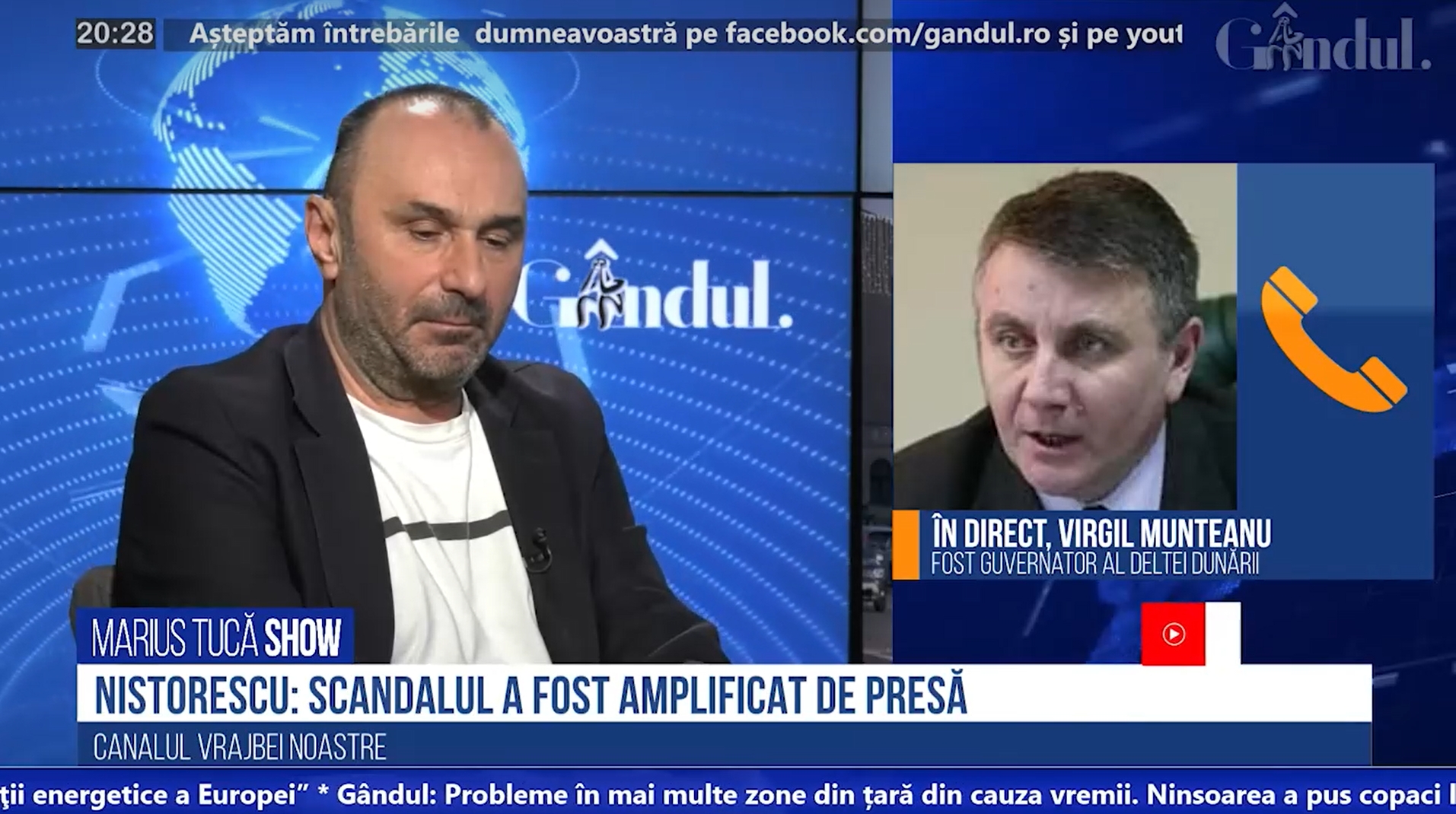 Virgil Munteanu, fost guvernator al Deltei Dunării, a avut o intervenție telefonică la emisiunea lui Marius Tucă, transmisă live de Gândul. Acesta spune că ministerul Mediului a trimis niște observații bune referitoare la Canalul Bâstroe. Urmăriți aici, integral, emisiunea lui Marius Tucă.