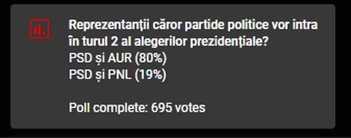 80% dintre români au răspuns că PSD și AUR vor intra în turul 2 al alegerilor prezidențiale.