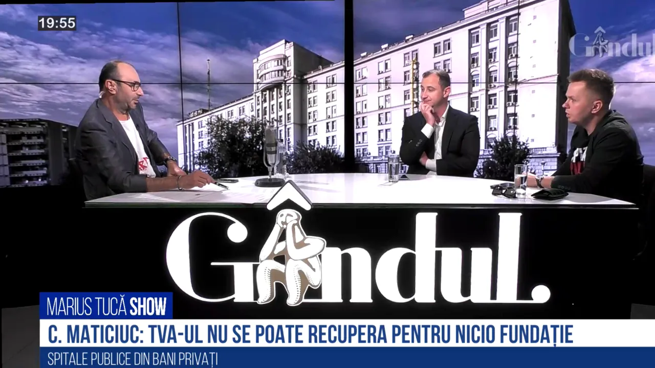 Codin Maticiuc, actor și regizor, a fost invitatul lui Marius Tucă într-o ediție transmisă live de Gândul. Acesta a declarat că este profund impresionat de toți oamenii care donează și se implică în proiectul său, „Spitale publice din bani privați”. Invitatul lui Marius Tucă speră, de asemenea, ca modificarea legii referitoare la rambursarea TVA pentru fundații să poată fi realizată cât mai curând.