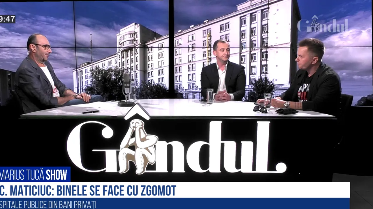 Codin Maticiuc, actor și regizor, a fost invitatul lui Marius Tucă într-o ediție transmisă live de Gândul. Acesta a vorbit despre proiectul „Spitale publice din bani privați”, cel care i-a ajutat și îi ajută în continuare pe mulți dintre copiii aflați în suferință. Invitatul lui Marius Tucă a precizat și că a încercat să schimbe, în acest fel, teoria părinților lui, potrivit căreia „Binele se face în liniște”.