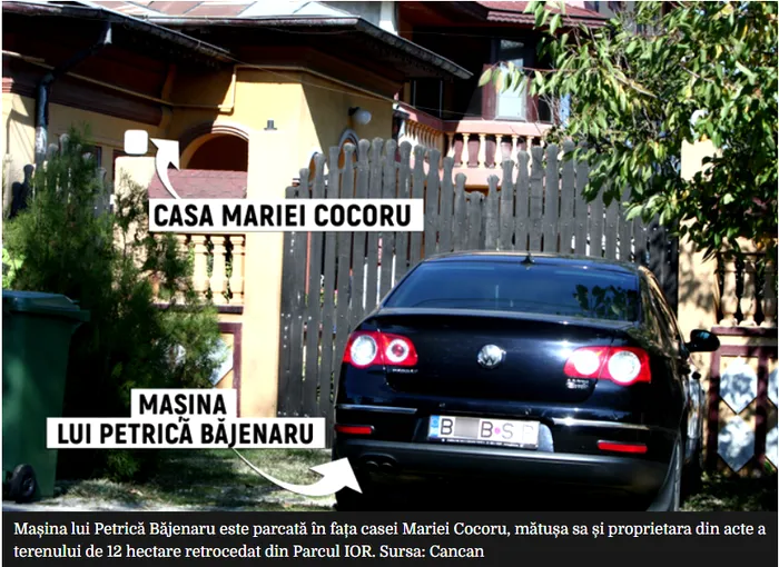În imaginile publicate atunci de Cancan, mașinile lui Petrică Băjenaru erau surprinse în fața casei Mariei Cocoru, proprietara din acte a celor 12 hectare de teren din Parcul IOR.