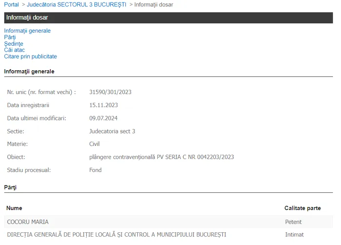 Tot la Judecătoria Sectorului 3 este și dosarul în care Maria Cocoru a contestat amenda uriașă de 35 de milioane de euro primită de la Direcția Generală de Poliție Locală și Control a Municipiului București, în octombrie 2023. Magistrații au amânat judecata până în 5 noiembrie 2024, când sunt așteptați să se prezinte în instanță moștenitorii Mariei Cocoru, cu dovada că ei sunt noii proprietari ai terenului de 12 hectare care a fost până în 2005 parte din Parcul IOR.