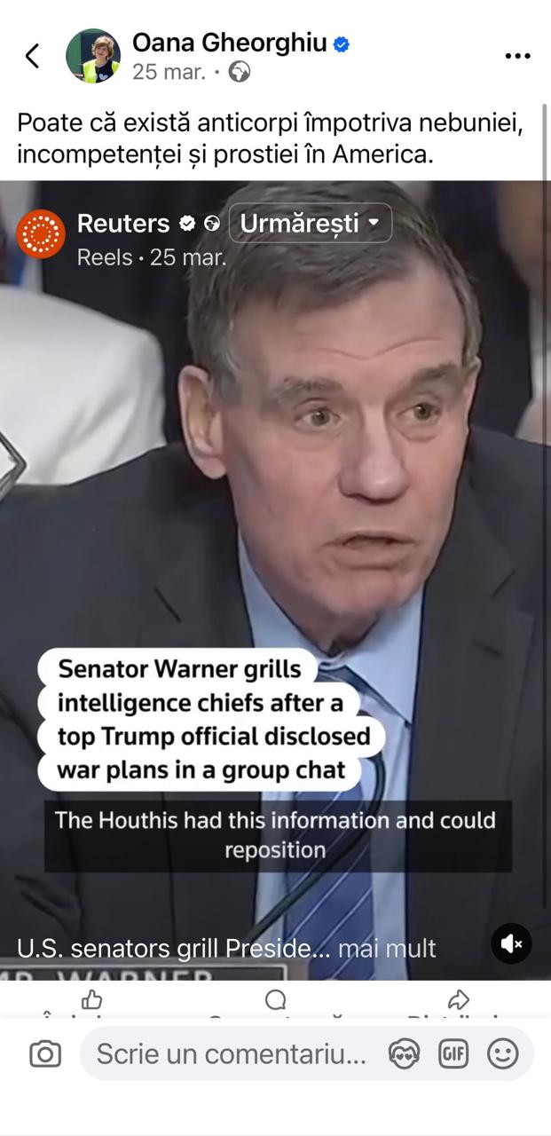 Sau vom asista la prăbușirea instituțiilor, una câte una, sub discursul toxic al lui JD Vance, sub manipulările lui Musk și sub haosul generat de Trump?”, a scris Oana Gheorghiu.