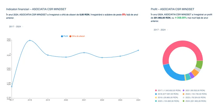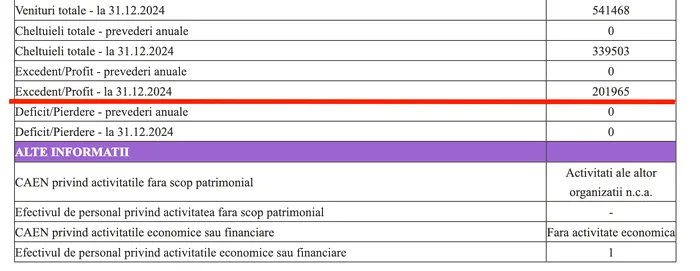 Datele financiare ale Asociației, reprezentată de același vicepremier Oana Gheorghiu, arată că în 2024 aceasta a avut un profit de 201.965 lei (40.393 euro). Adică o creștere de 358%, față de anul anterior.