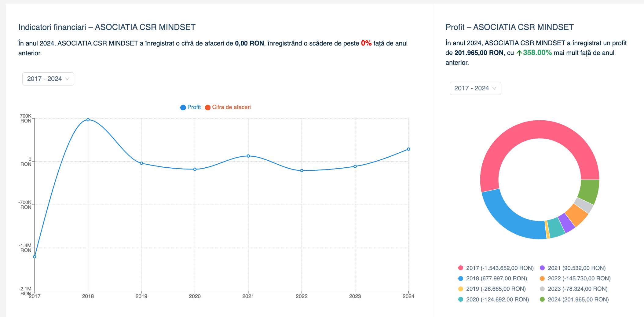 Ulterior, Gheorghiu și-a făcut și o asociație cu același nume al firmei, ONG care a încheiat anul 2024 cu o creștere de profit de 358%.