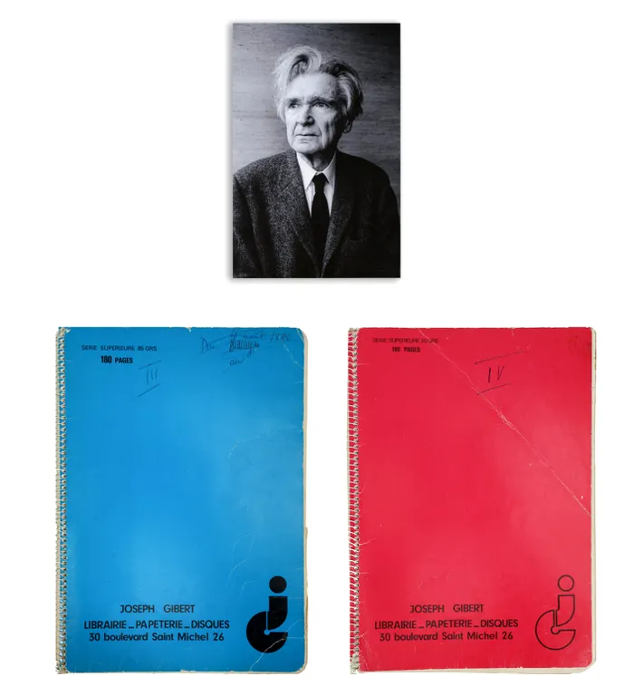 „Manuscrisul «Aveux et anathèmes», caietele III și IV, redactate pe hârtie velină, cu pix albastru, roșu, negru și verde, pe un număr de 149 de pagini (caietul roz) și 169 de pagini (caietul albastru).