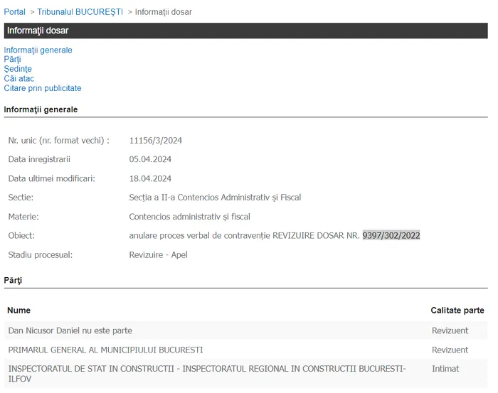 S-a dus în instanță și a cerut anularea proceselor verbale ale ISC. A făcut asta atât în calitate de persoană fizică, cât și în calitate de primar general, autoritate publică. Judecătorii nu i-au dat dreptate, iar Nicușor Dar cere revizuirea, cale de atac extraordinară, pentru că a plătit amenzile și avocații din bani publici și se teme de un dosar penal care ar putea fi deschis pe numele său.