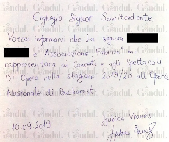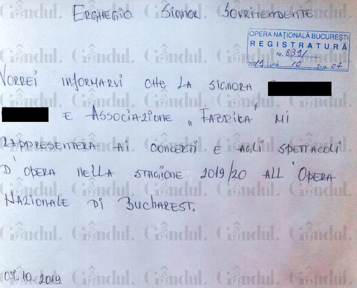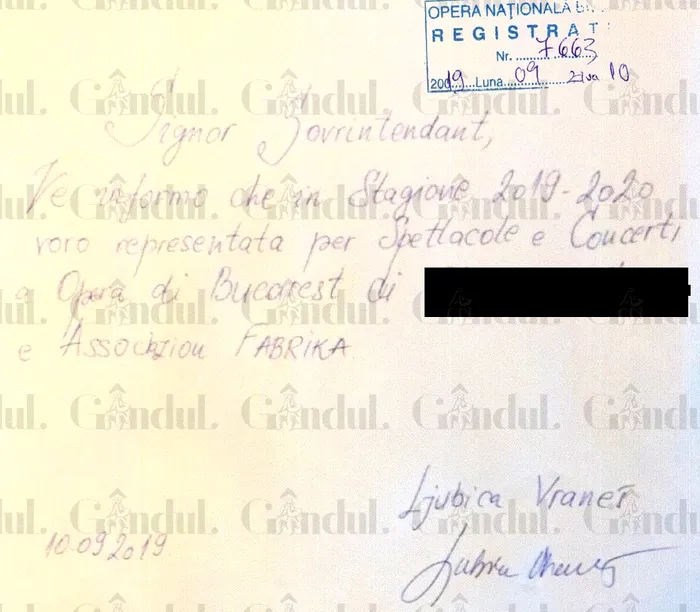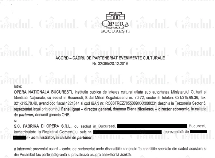 Dezvăluirile legate de Fănel Ignat, fostul director interimar al Operei Naționale București, continuă. De cealaltă parte, după primele episoade publicate de GÂNDUL a apărut și reacția… „Nu comentez”, completată de „fente” neverosimile prin care Ignat încearcă să demonstreze că nu ar fi scris el „autodenunțul”, numai că recunoaște, ulterior, că el este autorul notițelor. Notițele, spune tot Ignat, ar fi fost adresate chiar ministrului Culturii, Bogdan Gheorghiu. Culmea, Fănel Ignat afirmă că nu mai știe nici cine era femeia la care făcea referire în „filele de jurnal” – amanta sa, soprană la Opera Națională, la vremea respectivă – și spune că nu își amintește nici măcar ale cui erau inițialele Z.C.! Numai că același Fănel Ignat, atunci când era director interimar la Opera Națională, a încheiat un contract – „Acord-cadru de parteneriat evenimente culturale” -, în data de 20 decembrie 2019, cu Fabrika di Opera, firmă deținută chiar de… amanta sa!
