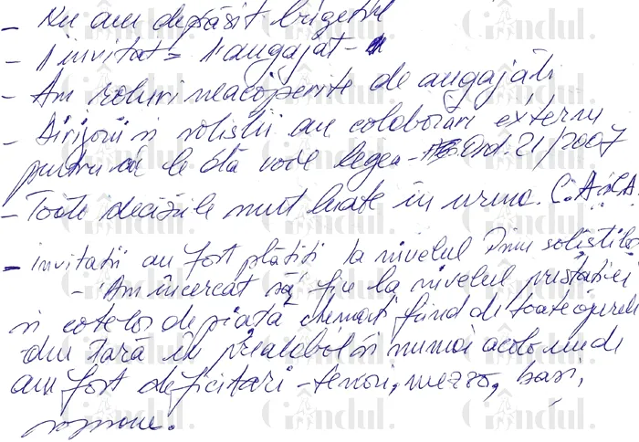 Mai mult, Fănel Ignat încearcă să nege… evidența, respectiv notițele pe care le-a scris cu propria mână la supărare, după ce amanta Z.C. l-a reclamat pentru hărțuire ministrul Culturii de la momentul respectiv, Bogdan Gheorghiu.