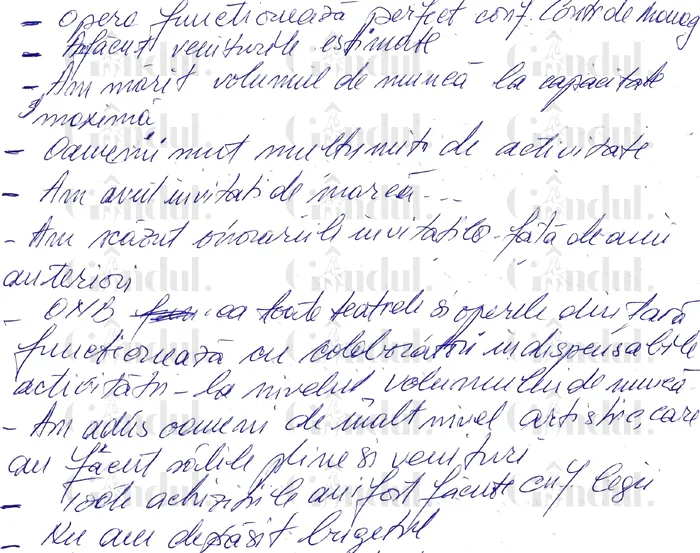 Fănel Ignat, în aceste „file de jurnal” prezentate în exclusivitate de Gândul, nu aduce și argumente în sprijinul afirmațiilor sale, ci punctează doar că, din punctul său de vedere, totul funcționa perfect la Opera Națională din București.