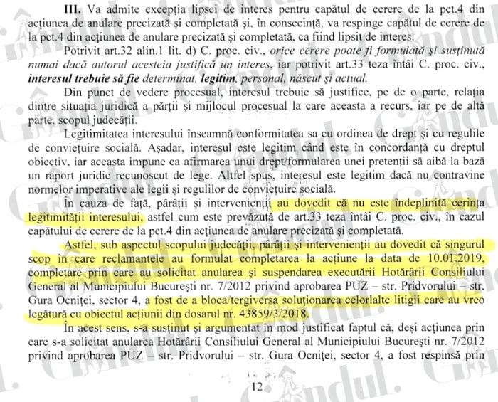 ”Instanța de fond, în anul 2019, le-a respins acțiunea. S-au dus cu recurs, instanța de la Curtea de Apel a casat hotărârea prin care ei pierduseră și a retrimis dosarul spre rejudecare. A durat încă trei ani și acum, după 5 ani, avem această soluție DATĂ PE FOND. Este atacabilă. Dar vorbim despre o soluție care este ABSURDĂ de-a dreptul, pentru că lipsește de efecte – ăsta este rolul anulării, lipsește de efecte un act juridic, în speța noastră un act administrativ – un PUZ care nu mai avea efecte din anul 2010.