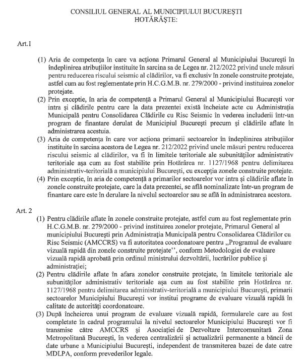 Un alt astfel de demers inițiat de primarul general Nicușor Dan se concretizează în proiectul de hotărâre inițiat în vederea delimitării teritoriale între autoritățile publice locale de la nivelul Municipiului București, cu atribuții în aplicarea Legii nr. 212/2022 privind unele măsuri pentru reducerea riscului seismic al clădirilor.